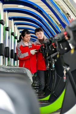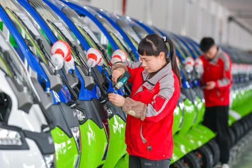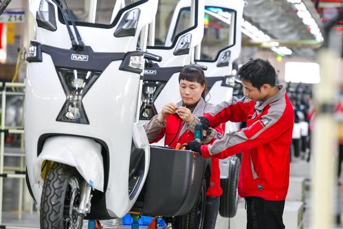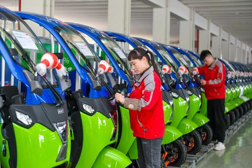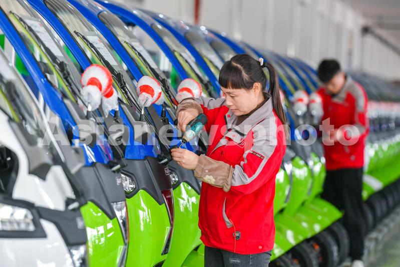 2023年4月14日,位于浙江省湖州市长兴经济技术开发区的浙江睿璞智能汽车股份有限公司数字化车间,工人忙碌赶制来自新加坡的高端新能源微型物流车订单。