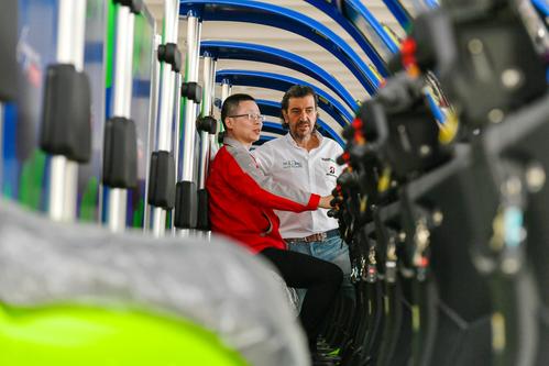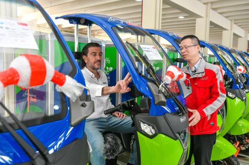 2023年4月14日,位于浙江省湖州市长兴经济技术开发区的浙江睿璞智能汽车股份有限公司数字化车间,西班牙客商正在实地察看高端新能源微型物流车产品。