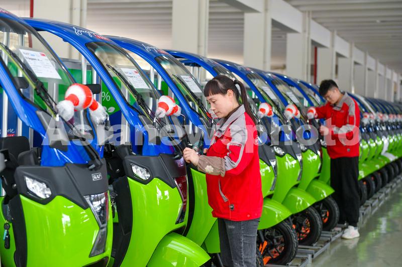 2023年4月14日,位于浙江省湖州市长兴经济技术开发区的浙江睿璞智能汽车股份有限公司数字化车间,工人忙碌赶制来自新加坡的高端新能源微型物流车订单。