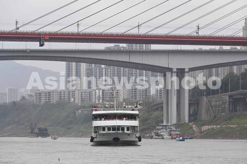 2023年4月6日,重庆市沙坪坝区,磁器口-洪崖洞的首班轮渡行驶在嘉陵江上。当日,磁器口-洪崖洞正式开航,400名游客分别坐上交运轮渡12、15号朝着磁器口和洪崖洞方向驶去。该航线全程约18公里,单程航行时间约60分钟,沿途可观看重庆大剧院、千厮门嘉陵江大桥、沙帽石、李子坝轻轨穿楼、磁器口古镇等著名观光景点和地标,还欣赏13座跨江桥梁。
