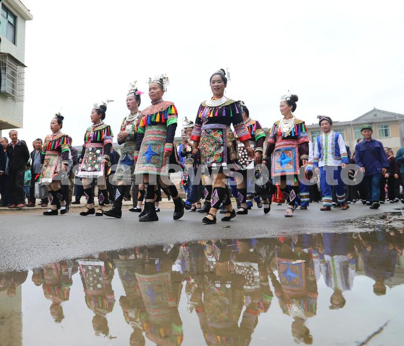 2023年4月18日,在湖南省怀化市通道侗族自治县牙屯堡镇大戊梁歌会现场,侗族群众身着盛装赴歌会。
