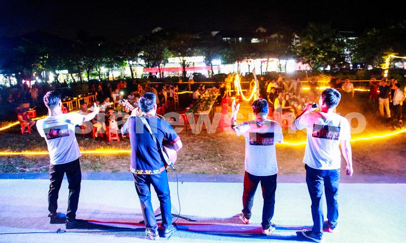 图片说明:2023年4月17日晚,庆祝海南黎族苗族传统节日“三月三”活动主题演出之长桌宴活动在海南省三亚市博后村举办,近百名市民和游客齐聚“网红”博后村品尝黎族盛宴。活动现场,表演者用优美的歌声欢迎远道而来的客人。
