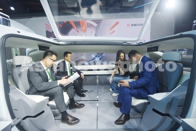 图片说明:2023年4月18日,观众在2023上海车展上参观滴滴自动驾驶首款未来服务概念车DiDi Neuron。