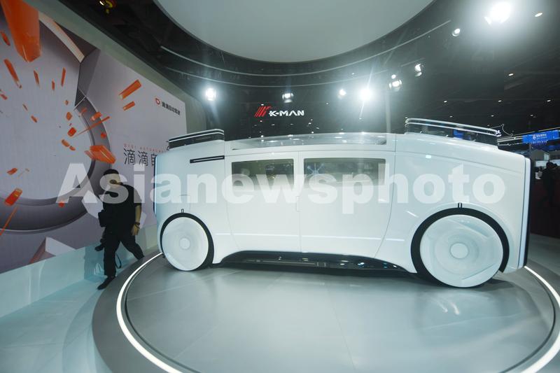 图片说明:2023年4月18日,观众在2023上海车展上参观滴滴自动驾驶首款未来服务概念车DiDi Neuron。