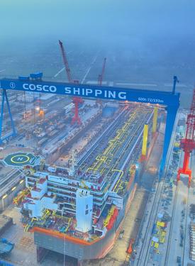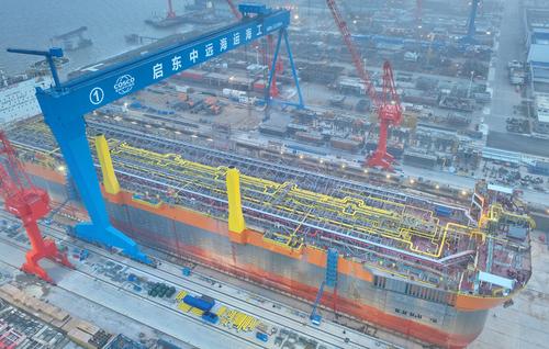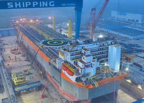 据介绍,被誉为“海上移动工厂”的该浮式生产储卸油船总长335米,型宽60米,型深33米,排水量达46万吨,设计储油能力为140万桶原油,是目前世界上最大吨位级的新型海上浮式生产储卸油船,适用于全球各个海域的油气开发作业。启东中远海运海工负责该FPSO 15个上部模块的设计、建造及项目整体总装。