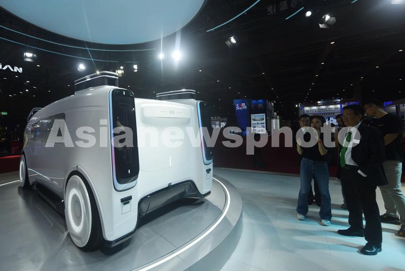 图片说明:2023年4月18日,观众在2023上海车展上参观滴滴自动驾驶首款未来服务概念车DiDi Neuron。