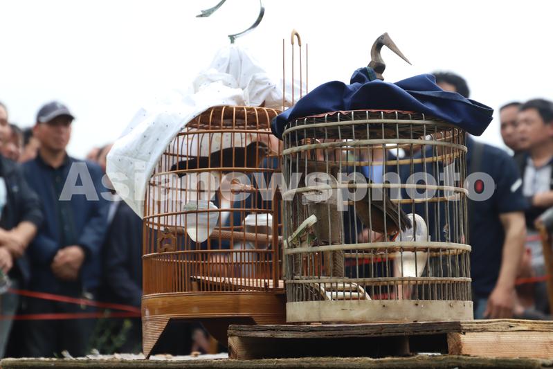 2023年4月18日,在湖南省怀化市通道侗族自治县牙屯堡镇大戊梁歌会现场,侗族群众在斗鸟。