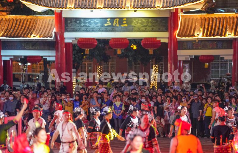 4月17日,在五指山市通什镇三月三广场,众多市民游客前来观看千人共同舞。