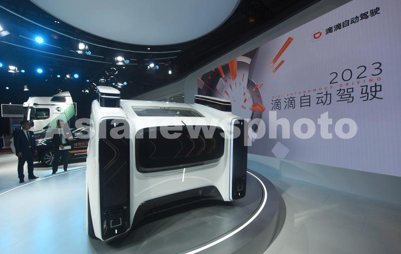 图片说明:2023年4月18日,观众在2023上海车展上参观滴滴自动驾驶首款未来服务概念车DiDi Neuron。