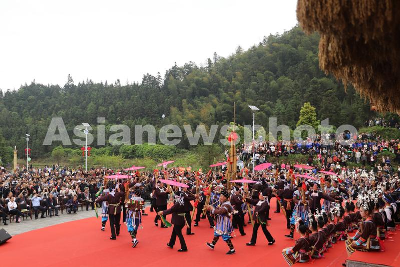2023年4月18日,在湖南省怀化市通道侗族自治县牙屯堡镇大戊梁歌会现场,侗族群众在吹奏芦笙。