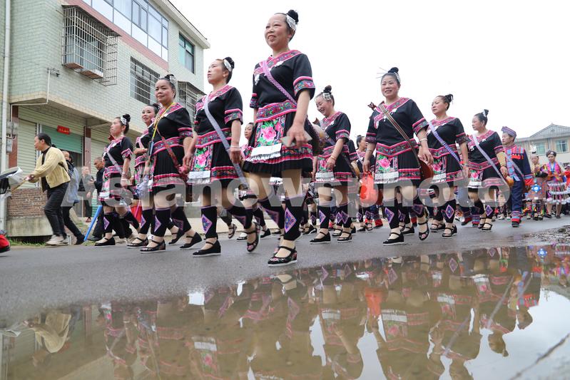 2023年4月18日,在湖南省怀化市通道侗族自治县牙屯堡镇大戊梁歌会现场,侗族群众身着盛装赴歌会。