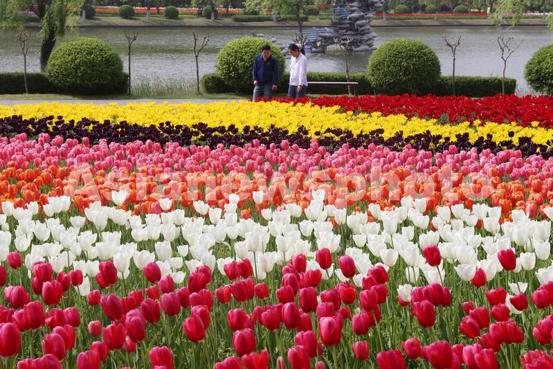 图片说明:2023年4月16日,上海,浦东郊野公园“上海鲜花港”举办的郁金香花展,美丽花朵为春游踏青赏花的游客献上一场花海盛宴。
