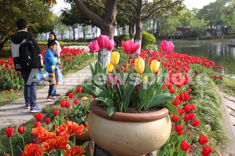 图片说明:2023年4月16日,上海,浦东郊野公园“上海鲜花港”举办的郁金香花展,美丽花朵为春游踏青赏花的游客献上一场花海盛宴。
