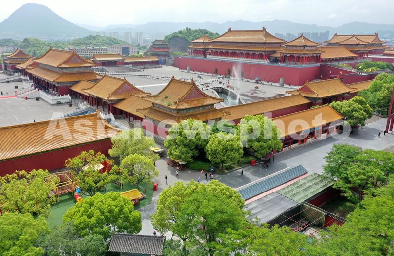 图片说明:4月21日,游客在浙江省东阳市横店影视城明清宫苑景区游玩。