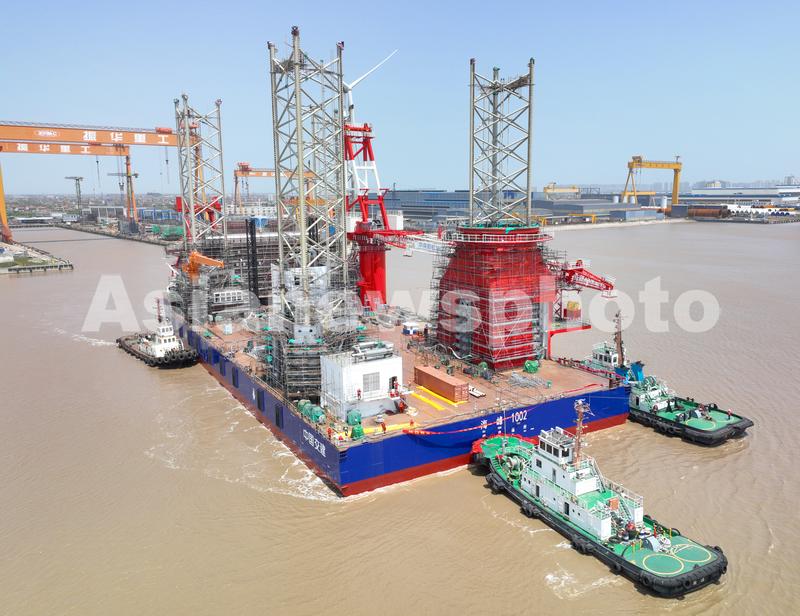 2023年4月21日, 由振华重工为中交海峰风电建造的1800吨海上风电安装平台在振华重工启东海工顺利下水出坞。