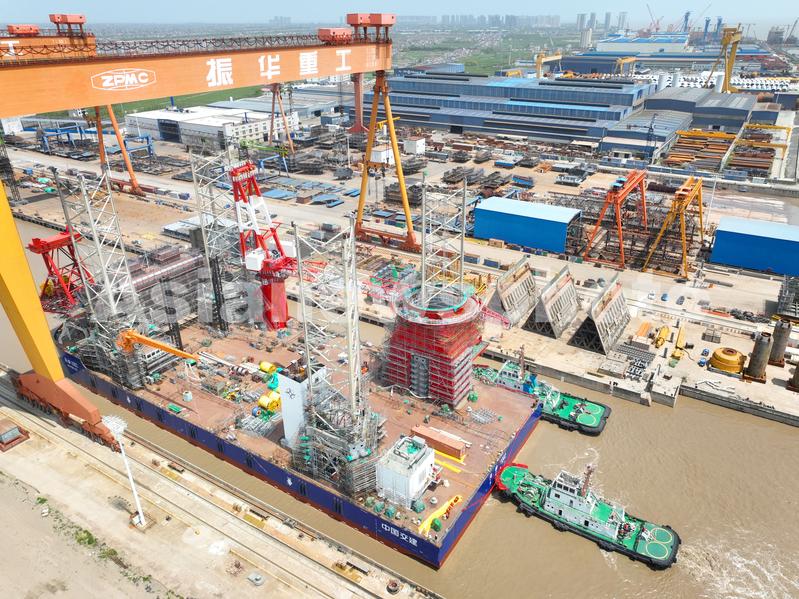 2023年4月21日, 由振华重工为中交海峰风电建造的1800吨海上风电安装平台在振华重工启东海工顺利下水出坞。