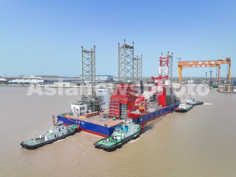 2023年4月21日, 由振华重工为中交海峰风电建造的1800吨海上风电安装平台在振华重工启东海工顺利下水出坞。