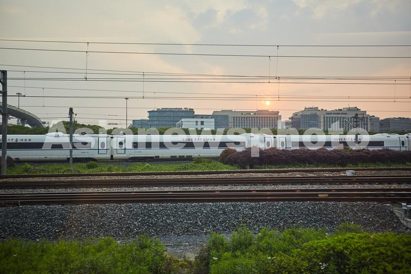 2023年4月26日,上海,五一节前的上海虹桥火车站,一列高铁列车驶进虹桥火车站。