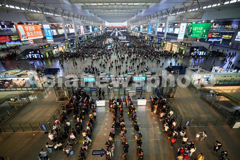 2023年4月26日,上海,五一节前的上海虹桥火车站,人流如潮。
