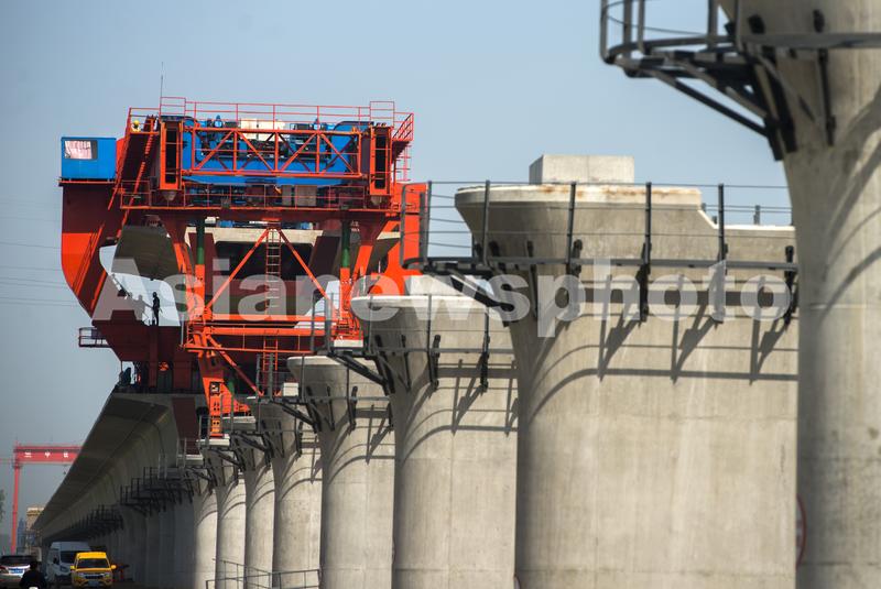 5月1日,中铁上海工程局在淮北市濉溪县进行桥梁架设任务。