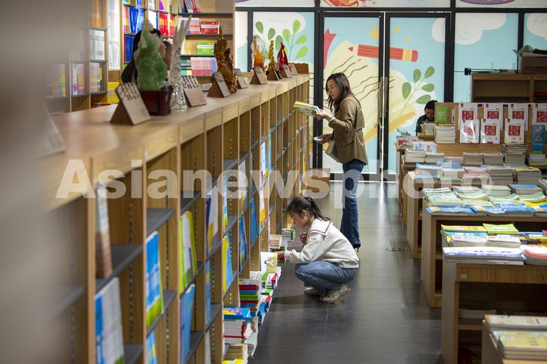 2023年5月2日,人们在江苏南通海安市一家书店内选购书籍。