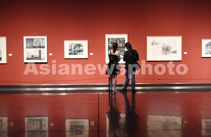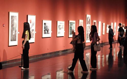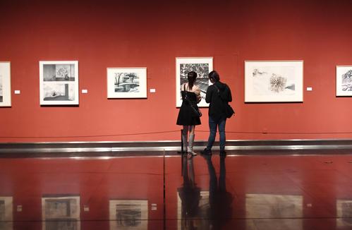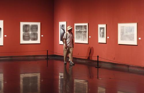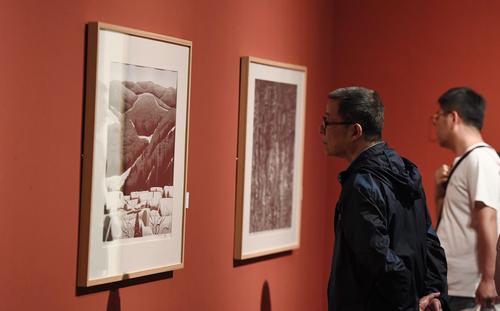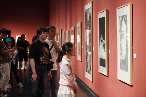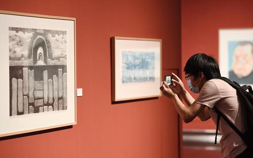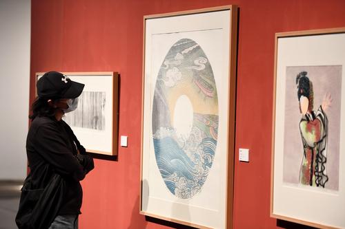 2023年5月2日,南京,观众在江苏省美术馆新馆内观看展出的版画。