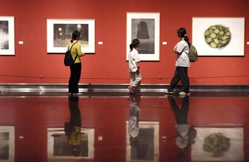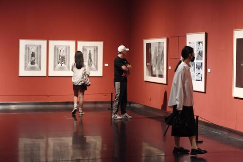 2023年5月2日,五一长假期间,众多市民游客来到位于南京的江苏省美术馆,观看正在展出的版画展,接受艺术熏陶,感知艺术魅力,乐享悠闲假期。