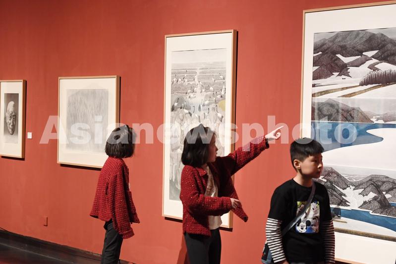 2023年5月2日,南京,观众在江苏省美术馆新馆内观看展出的版画。