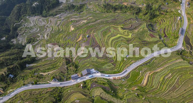 图片说明:2023年4月30日,在贵州省黔东南苗族侗族自治州从江县加榜乡境内拍摄的梯田风光。