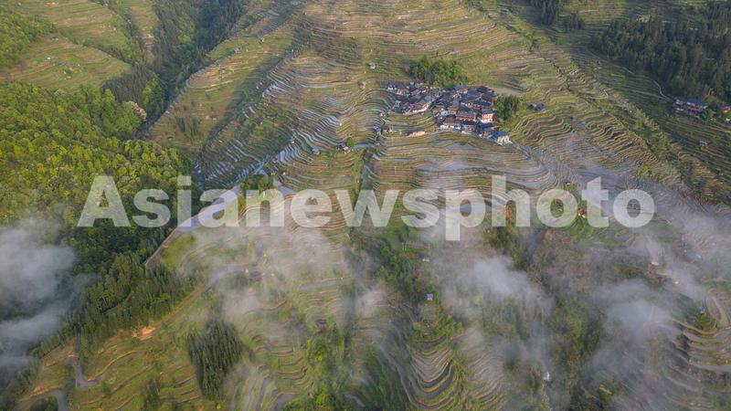 图片说明:2023年4月30日,在贵州省黔东南苗族侗族自治州从江县加榜乡境内拍摄的梯田风光。