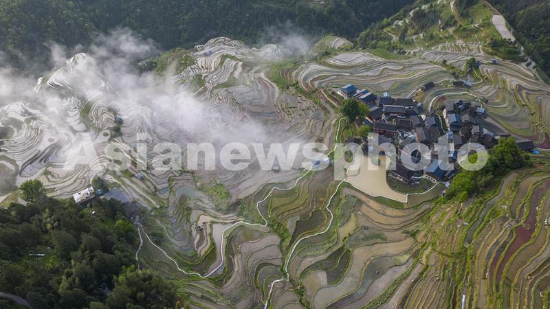 图片说明:2023年4月30日,在贵州省黔东南苗族侗族自治州从江县加榜乡境内拍摄的梯田风光。