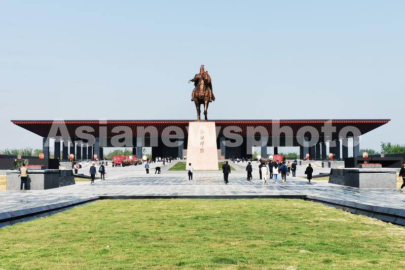 2023年4月27日,曹操高陵遗址博物馆的魏武挥鞭雕像。