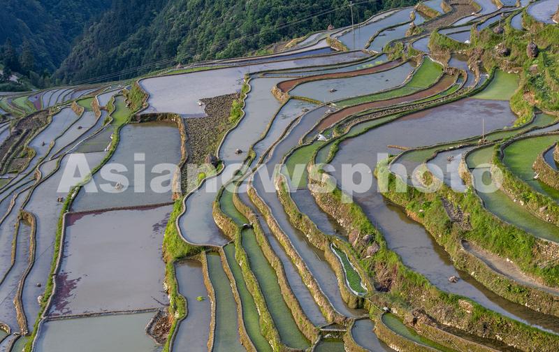 图片说明:2023年5月2日,在贵州省黔东南苗族侗族自治州从江县加榜乡境内拍摄的梯田风光。