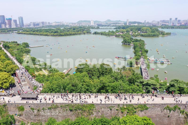 图片说明:2023年5月2日,游客在南京明城墙解放门段参观游览。