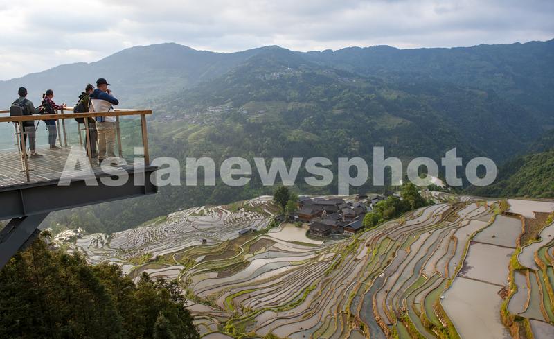 图片说明:2023年5月2日,在贵州省黔东南苗族侗族自治州从江县加榜乡境内拍摄的梯田风光。