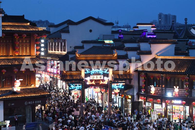 2023年5月2日晚,游客在南京夫子庙景区参观游览。