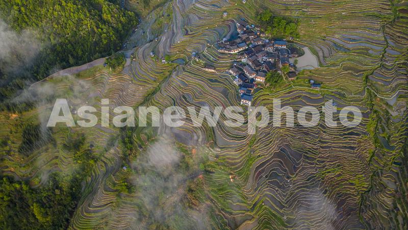 图片说明:2023年4月30日,在贵州省黔东南苗族侗族自治州从江县加榜乡境内拍摄的梯田风光。