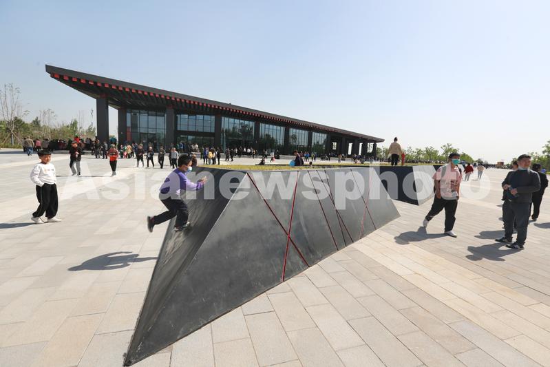 2023年4月29日,河南安阳,曹操高陵遗址博物馆向公众开放,游客沉浸式体验“曹魏”遗风,并与景区讲解员、演职人员互动。