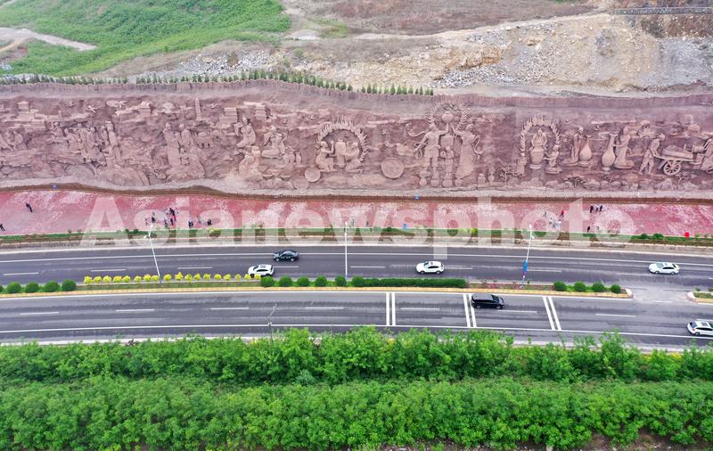 5月5日拍摄的河北省邯郸市峰峰矿区大型磁州窑山体浮雕(无人机照片)。