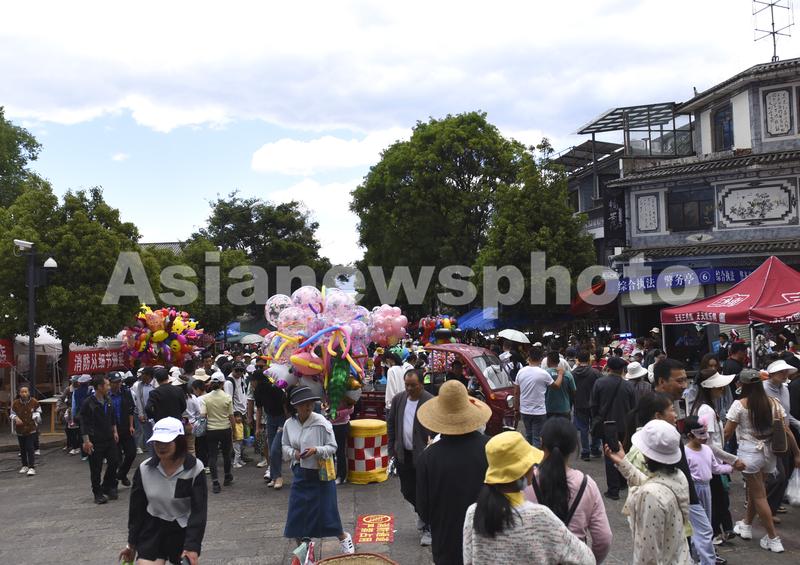 2023年5月3日,游人在云南省大理州三月街民族节上逛街游玩。
