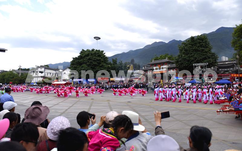 图片说明:2023年5月3日,游人在云南省大理州三月街民族节上逛街游玩。