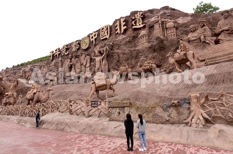 5月5日,游客在参观河北省邯郸市峰峰矿区大型磁州窑山体浮雕。