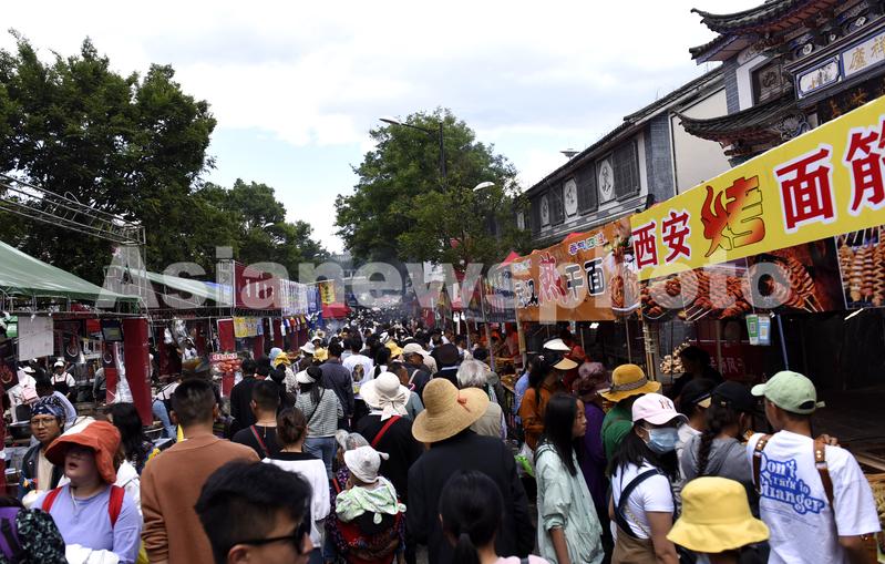 2023年5月3日,游人在云南省大理州三月街民族节上逛街游玩。大理三月街民族节期间,来自全州的各族群众和海内外游客欢一起聚苍山脚下,共赴千年盛会,尽享节日欢乐,共同逛三月街、观赏民俗、品尝美食、观看赛马等,体验“千年赶一街、一街赶千年”的独特魅力。