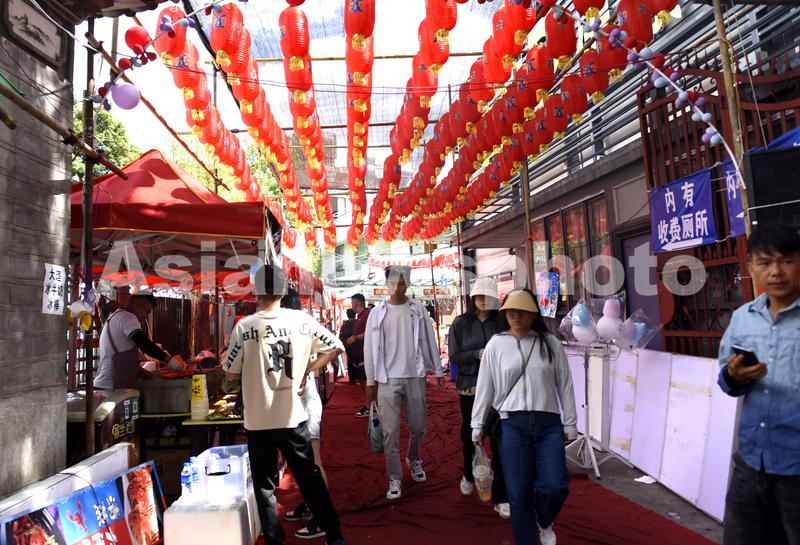 2023年5月3日,游人在云南省大理州三月街民族节上逛街游玩。大理三月街民族节期间,来自全州的各族群众和海内外游客欢一起聚苍山脚下,共赴千年盛会,尽享节日欢乐,共同逛三月街、观赏民俗、品尝美食、观看赛马等,体验“千年赶一街、一街赶千年”的独特魅力。