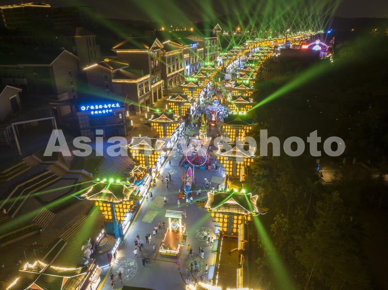 图片说明:2023年5月6日晚,广西南宁市五象新区的“南宁之夜”流光溢彩、人头攒动,络绎不绝的游客和市民逛街购物、品尝美食、休闲娱乐。