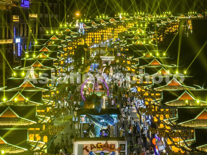 图片说明:2023年5月6日晚,广西南宁市五象新区的“南宁之夜”流光溢彩、人头攒动,络绎不绝的游客和市民逛街购物、品尝美食、休闲娱乐。
