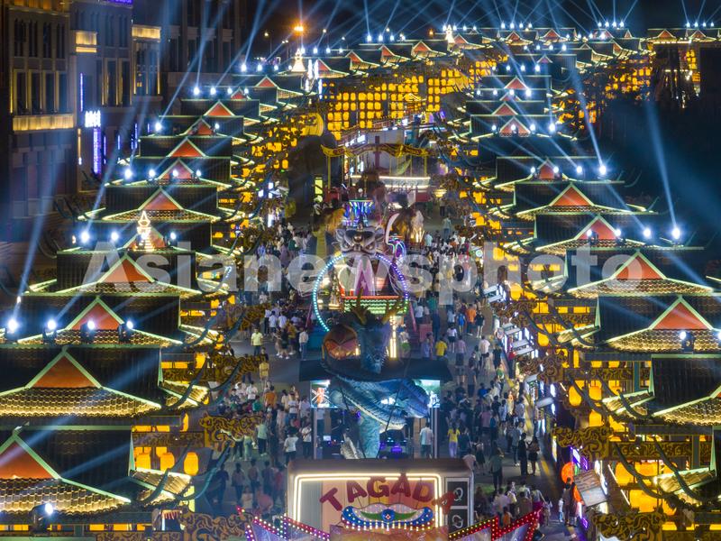 图片说明:2023年5月6日晚,广西南宁市五象新区的“南宁之夜”流光溢彩、人头攒动,络绎不绝的游客和市民逛街购物、品尝美食、休闲娱乐。