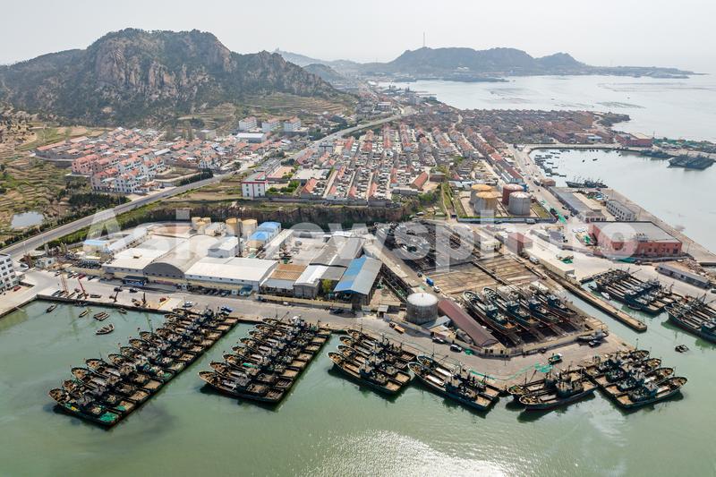 2023年5月2日,山东威海,荣成市成山镇一家码头抛锚停放的休渔渔船。
