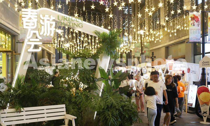 2023年5月5日,上海,最繁华的商业旅游地标南京路步行街五一后人气不减,街头的春游会迷你集市受欢迎。