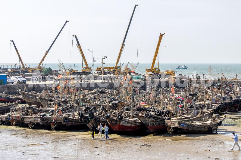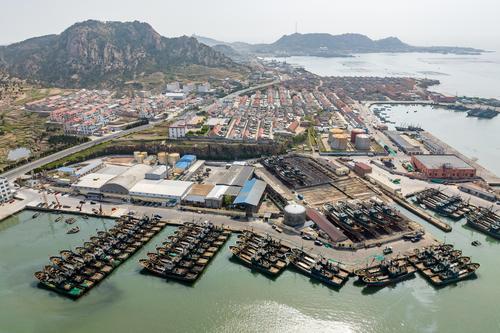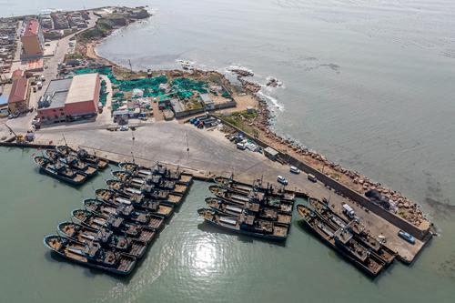 2023年5月2日,山东省日照市东港区,秦楼街道任家台码头抛锚停放的休渔渔船。